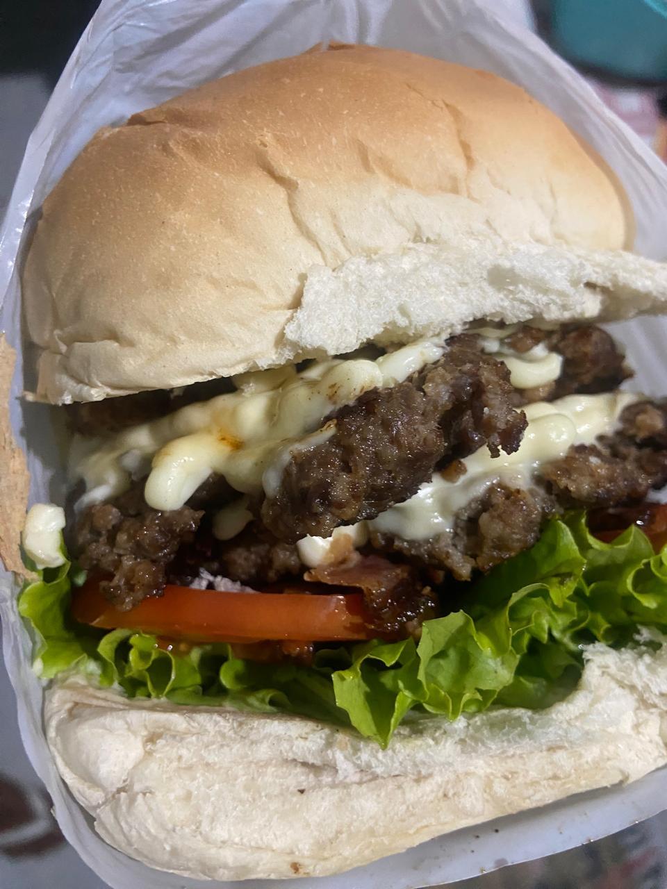 3 hambúrguer caseiro, bacon, catupiry, alface, tomate e maionese caseira.