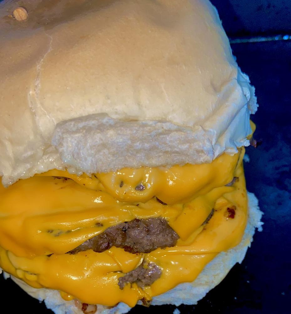 3 hambúrguer, cheddar em fatias, bacon, maionse caseira.