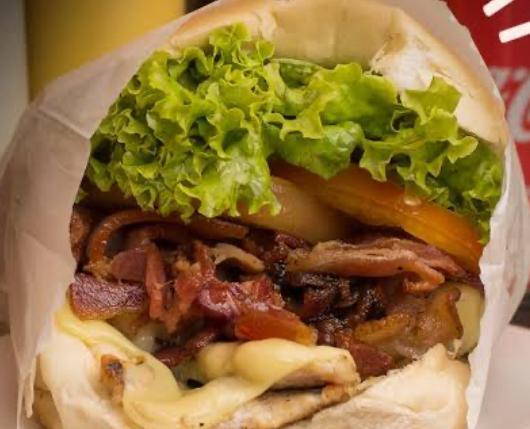 Frango grelhado, bacon, alface, tomate e maionese caseira.