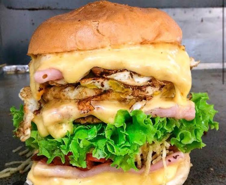 Frango grelhado, bacon, calabresa, ovo, presunto, alface, tomate e maionese caseira.