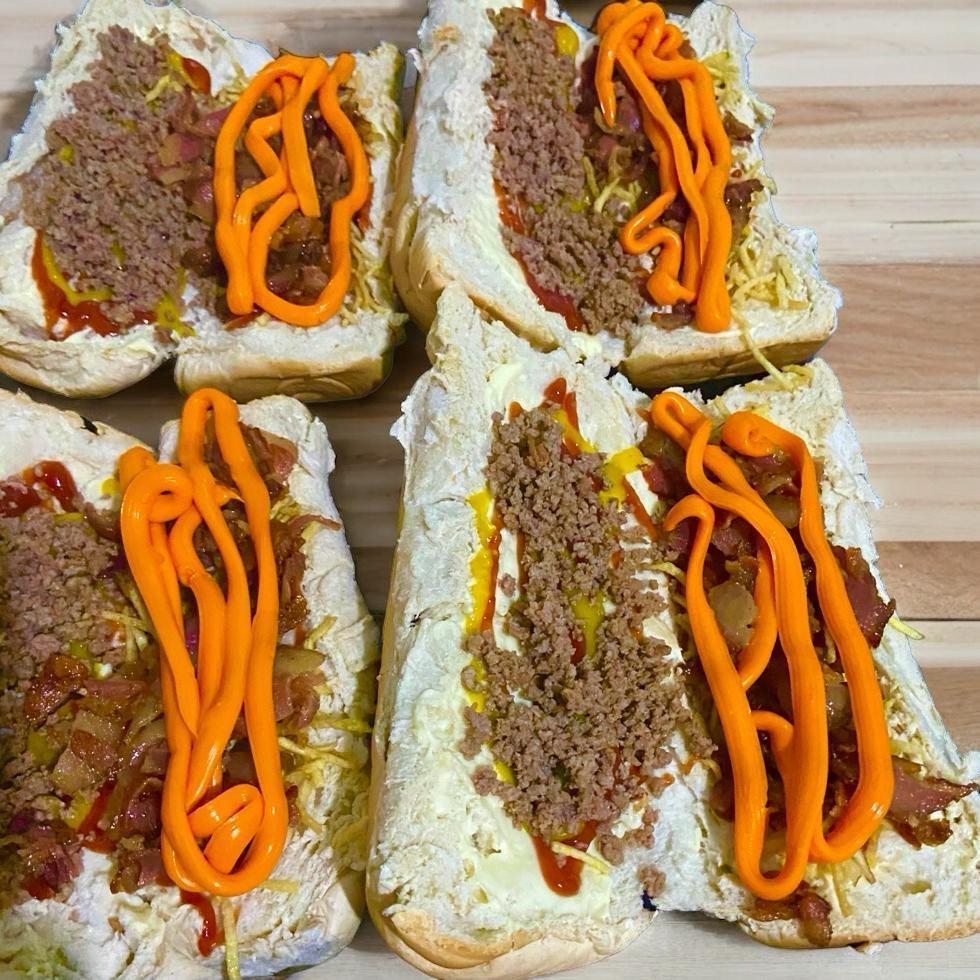 2 Salsichas, carne moiada, Bacon, cheddar, ketchup, mostarda, batata palha, e maionese caseira.